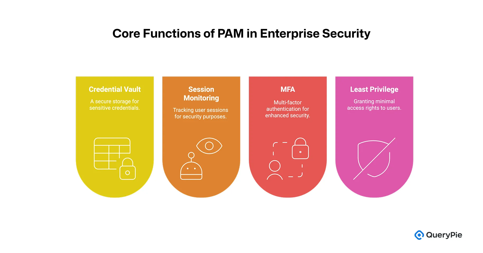 According to industry leaders like Microsoft and CyberArk, PAM aims to protect critical assets from insider misuse and external threats by identifying, isolating, monitoring, and auditing all privileged accounts and sessions within an organization[12][13]. Key capabilities of a PAM solution typically include secure credential vaults for storing administrative passwords and keys, session recording features to monitor and audit privileged user activities, multi-factor authentication (MFA) to verify user identities, and the enforcement of the principle of least privilege, ensuring that users are granted only the minimum level of access necessary to perform their tasks[12].