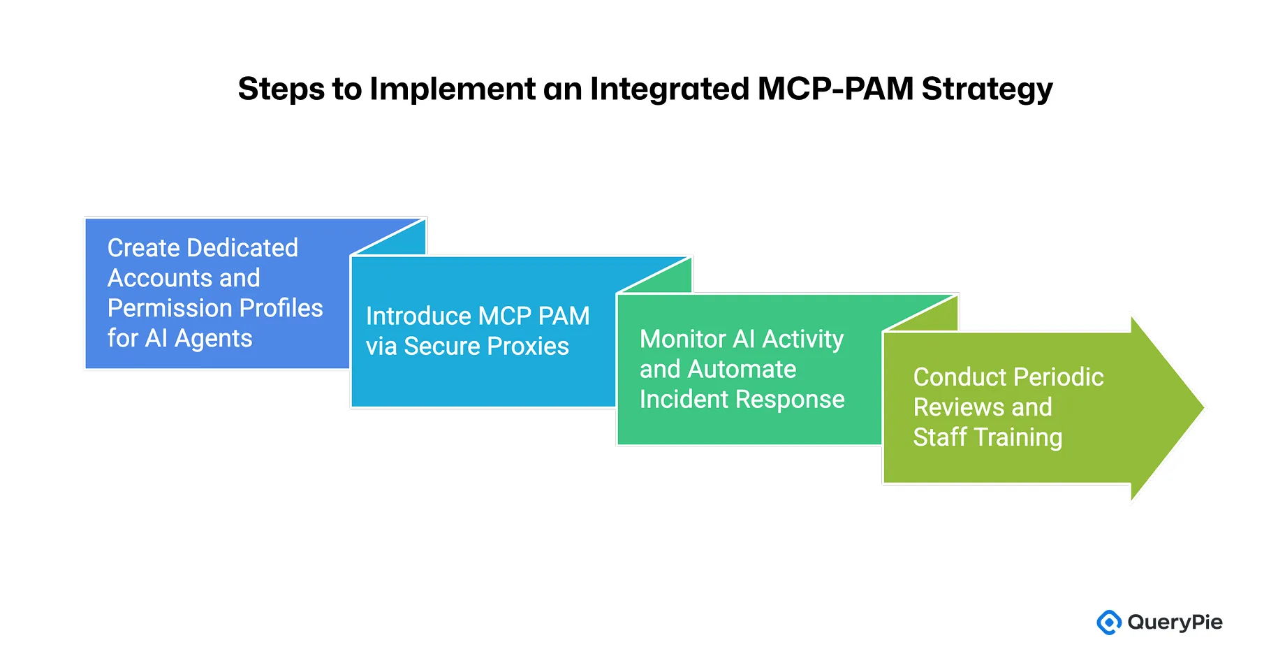 To implement the principles outlined above, organizations can take the following concrete steps as part of their integrated MCP-PAM strategy:
